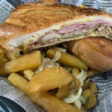 The best cuban from Miami to New York! In house slow roasted pork, ham, swiss and pickles served with SK hand cut fries. *pictured with Yuca fries which are also available.