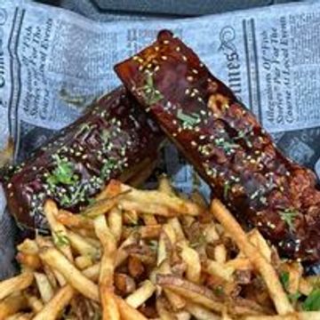 An SK original twist on the classic chicharron. It is braised to crisp perfection then finished with our SK housemade sweet asian sauce and topped with wasabi sesame seeds. This is served with choice of SK hand cut fries, Yuca fries or tostones. This is an SK top seller, selling out daily.